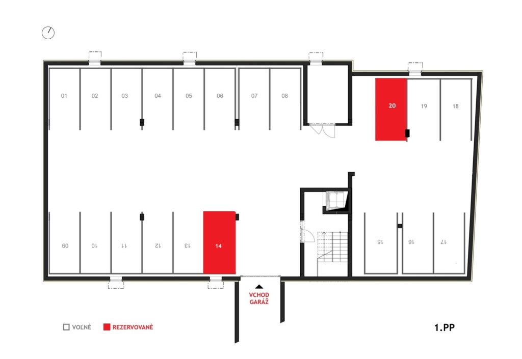 | 20 | REZERVOVANÉ | 1 PP | garážové státie | 2,5 x 5 | 19 990,- |